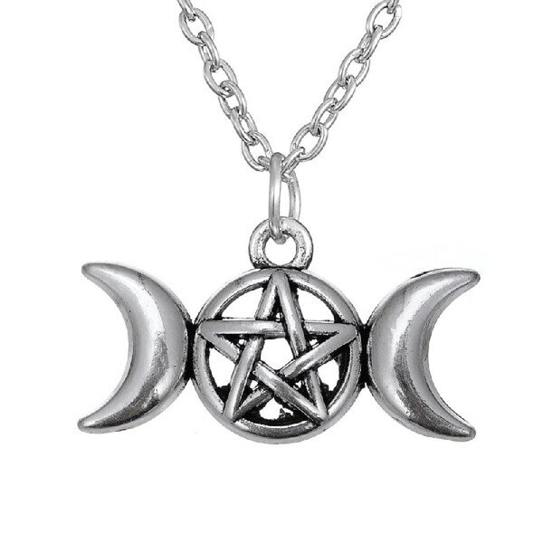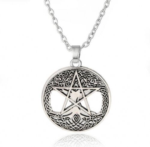 Pentacolo di protezione con lune wicca , serve per lavorare in magia e avere sempre cosi una protezione personale indossandolo in acciaio anallergico già caricato completo di catenina .