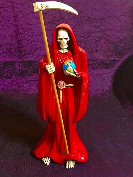 Questa statua della Santissima Muerte serve come protezione inoltre potete chiederle ogni vostra necessità e con fede sarete ascoltati dedicatevi con fede alla grande signora .